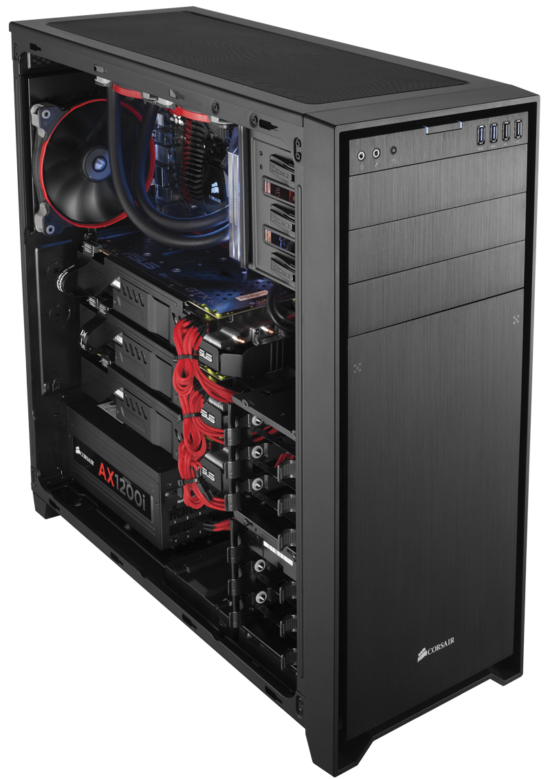 Le particolari funzioni e caratteristiche dell’ Obsidian Series 750D sono indirizzate ad utenti che desiderano sfruttare il proprio sistema al limite delle sue possibilità. Il case è progettato per consentire l’assemblaggio di un PC in modo rapido e semplice grazie a caratteristiche quali pannelli laterali e alloggiamenti per unità storage senza viti, punti di montaggio e anelli passacavo di instradamento e un’apertura per l’accesso alla CPU e linguette di allineamento sul retro della scheda madre.