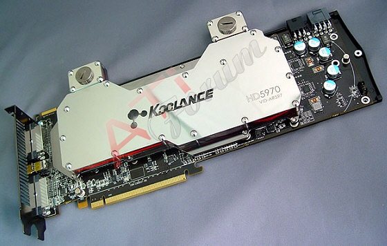 Koolance, noto produttore di sistemi di raffreddamento a liquidido per PC, ha rilasciato nella giornata di oggi alcune immagini del nuovo waterblock per la scheda Radeon HD 5970. Grazie al particolare design, il waterblock proposto da Koolance permette di raffreddare attivamente entrambe le GPU da 40nm, il bridge di connessione, memorie e mosfet di alimentazione. Il waterblock, VID-AR597, è completamente realizzato in rame, ricoperto da uno strato di nickel; tra le altre caratteristiche segnaliamo la presenza di materiale di tipo acrilico utile a tenere sott’occhio il perfetto funzionamento del WB. Il prodotto sarà disponibile a partire dal mese di Dicembre con prezzo di 140$.