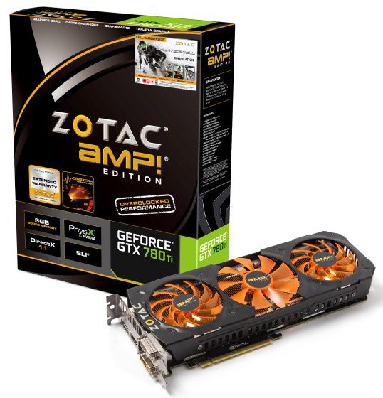 Zotac ha annunciato il lancio di una nuova versione custom del modello top gamma targato NVIDIA GeForce GTX 780Ti. La scheda, denominata AMP! Edition, propone frequenze di funzionamento e sistema di raffreddamento custom; la scheda è caratterizzata infatti da un sistema di raffreddamento con tre ventole ed ampio dissipatore in alluminio con heatpipes. Secondo l’azienda si dovrebbero registrare temperature estremamente inferiori, anche nell’ordine di 10°C, rispetto al sistema di raffreddamento reference.
