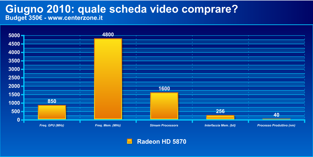 In questa fascia la scheda video più consigliabile è la Radeon HD 5870; questa scheda ha prestazioni leggermente inferiori ad un GTX 295 ma con un consumo molto minore.