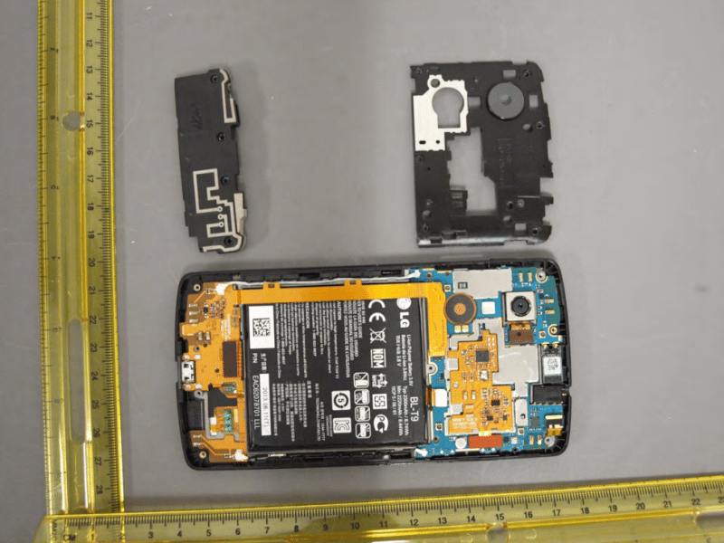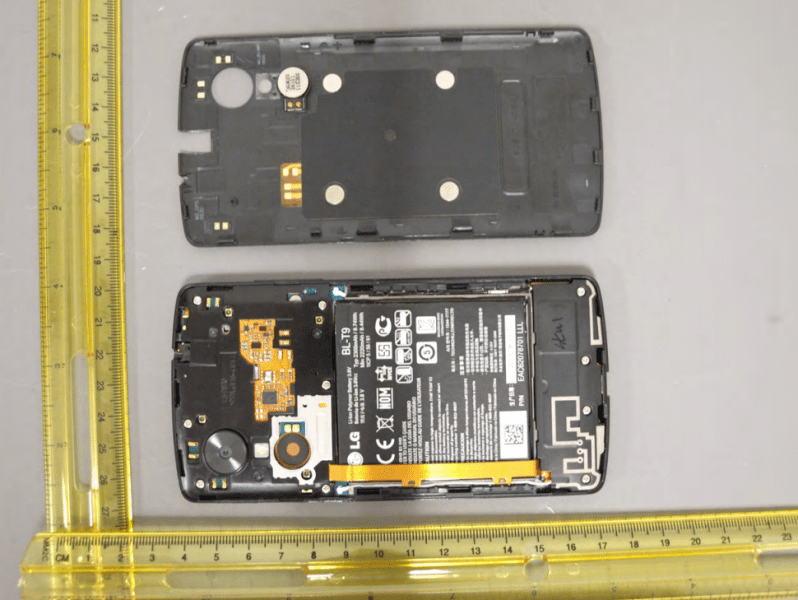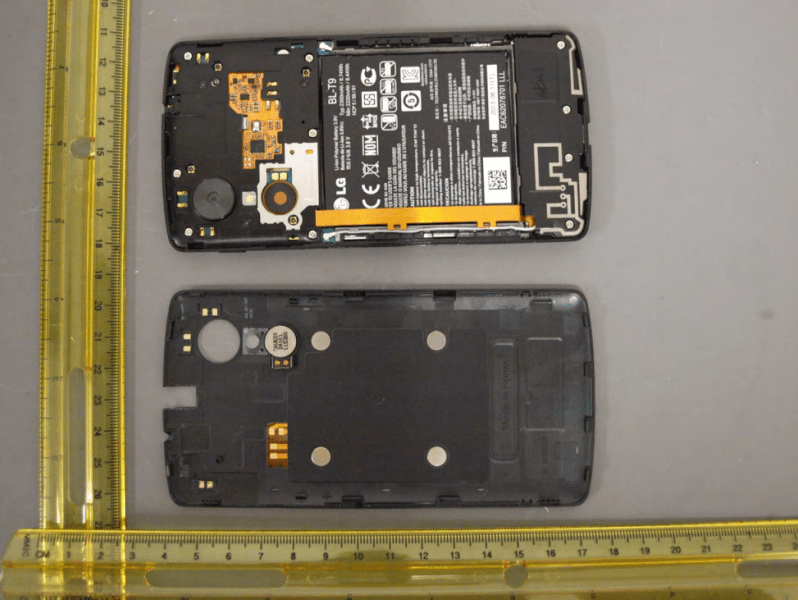 Il modello del terminale, come si legge chiaramente dalla targhetta posta nella parte posteriore del Nexus, è LG D820 (come si vociferava già da diverso tempo) e la batteria da 2.300 mAh; il form factor segue le classiche linee dei vecchi Nexus, anche se il nuovo smartphone LG sembra più squadrato e con una cornice leggermente più sottile.