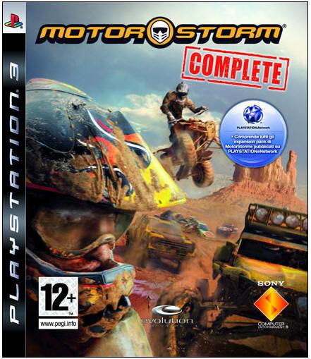 In tutto dovrebbero esserci circa 60 nuovi extra tra mappe, skin e veicoli, inclusa ovviamente la modalità Time Attack. Il nuovo MotorStorm Complete uscirà in Europa entro questa settimana, e costerà circa 50 Euro. Per riconoscerlo sugli scaffali dei negozi vi basta osservare la copertina ufficiale, che vi riportiamo di seguito: