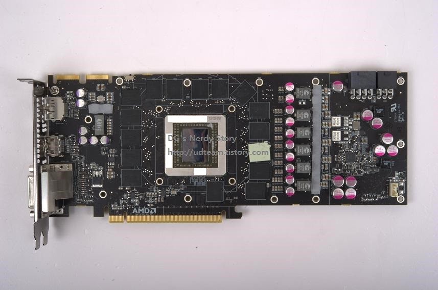 Come è possibile vedere dalle immagini allegate, la scheda è caratterizzata dalle medesime dimensioni della precedente versione Radeon HD 7970 ma presenta alcune novità molto importanti; la prima fra tutte è la GPU, ora di dimensioni maggiori ma realizzata sempre con il processo produttivo a 28nm. On-board sono presenti ben sei chip memoria con interfaccia a 512bit, frequenze a 6GHz e una bandwidth teorica di 384GB/s.