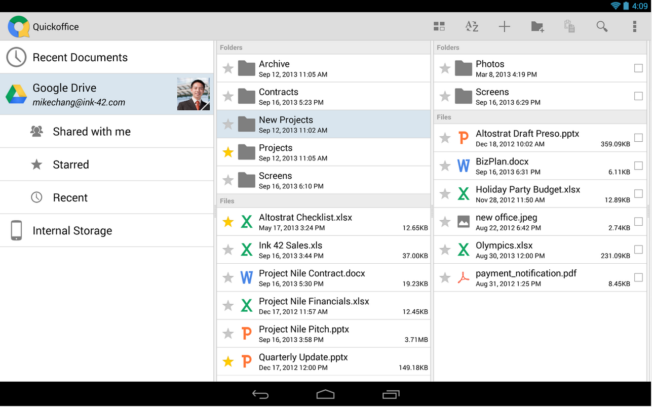 La nota applicazione QuickOffice, acquistata qualche anno fa da Google, è ora disponibile gratuitamente per tutti gli utenti, sia Android che iOS, L’app permette di creare, modificare documenti, fogli di calcolo e presentazioni di Microsoft Office direttamente sul proprio telefono o tablet, senza dover “passare” necessariamente su PC.