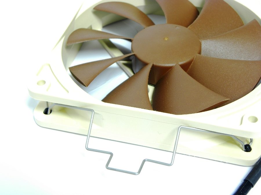 La versione NF-P12 presenta le stesse caratteristiche della sorella maggiore; troviamo lo stesso disegno delle pale, dimensioni di 120mm, velocità di rotazione di 1300RPM (900 RPM se si utilizza l’adattatore in bundle), portata d’aria di 92.3 m3/h, rumorosità di 19.8dB/a e MTBF di oltre 150.000h. Anche questa versione è equipaggiata con clip in metallo e gommini per ridurre al minimo le vibrazioni.