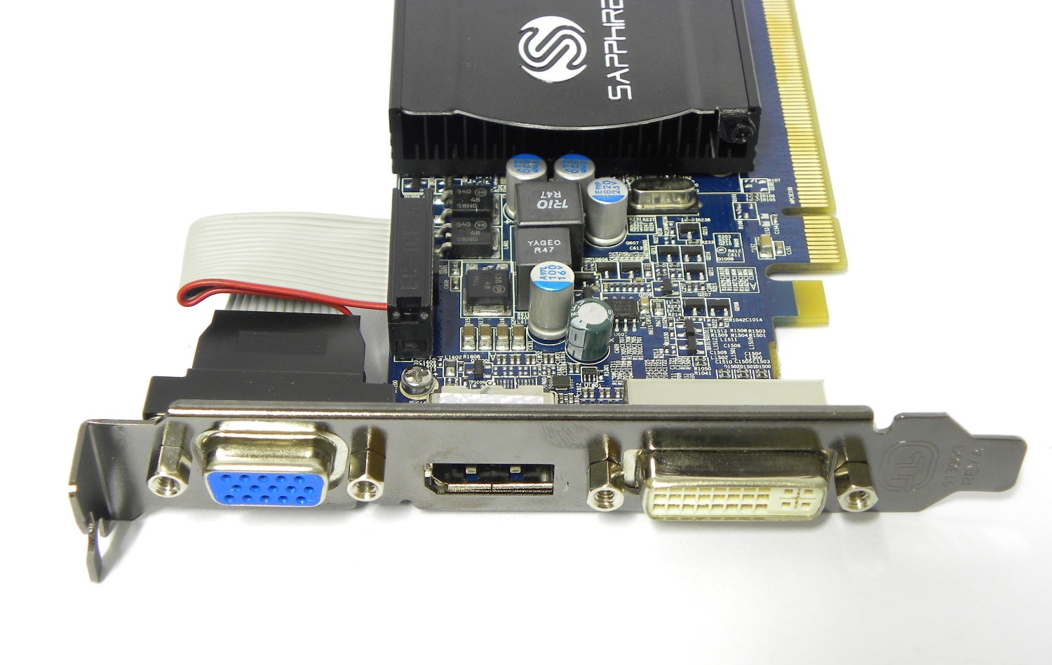 Come è possibile vedere dall’immagine, sono disponibili uscite DVI, Displayport e VGA con possibilità di montare gli adattatori su staffe differenti nel caso volessimo installare la scheda su HTPC o Barebone. Per quanto riguarda la porta Displayport, come vedremo successivamente, permette di collegare contemporaneamente fino a tre monitor sfruttando di fatto la tecnologia ATI Eyefinity.