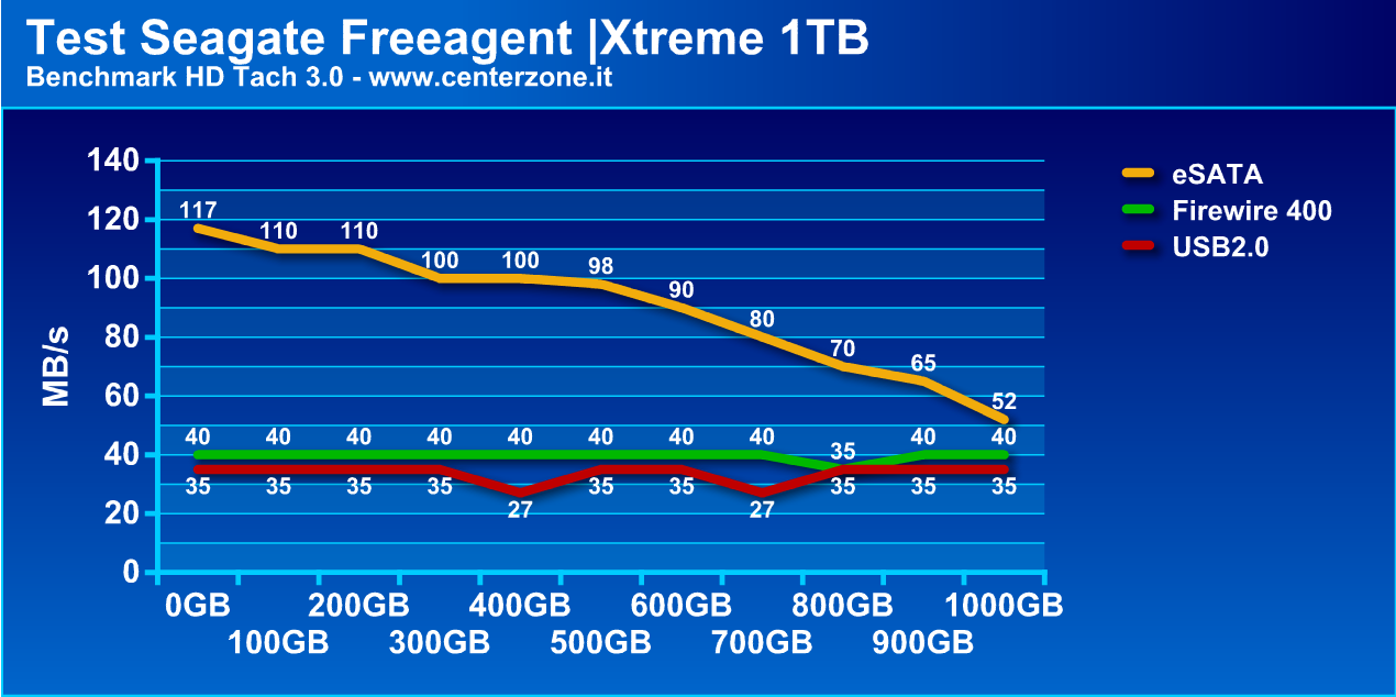 Per testare la vera efficacia del drive esterno di casa Seagate, abbiamo utilizzato il software HD Tach 3.0.