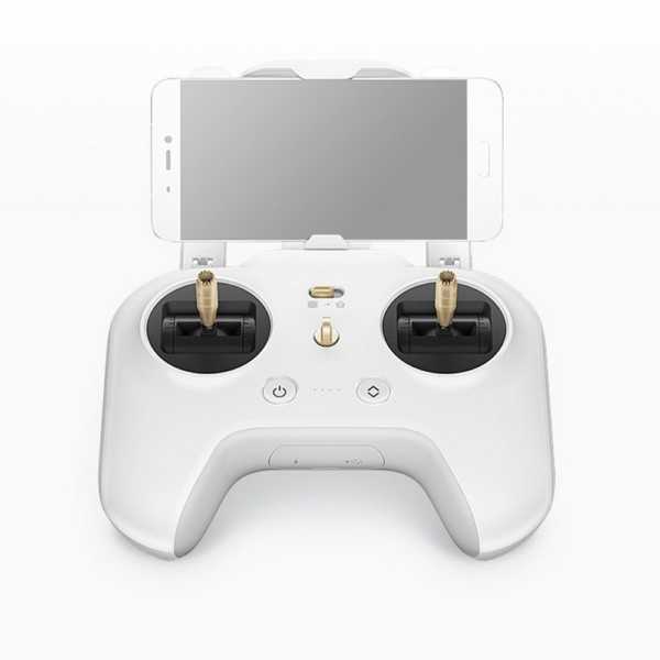 Il radiocomando Xiaomi è senza dubbio ben riuscito a livello di design, molto leggero e minimale al massimo. Nella parte superiore è caratterizzato da un carrello a scomparsa, che permette di alloggiare senza problemi smartphone fino a 6″. Nella parte frontale troviamo i due stick per il controllo del drone e il pulsante per il “Ritorno a casa automatico”.