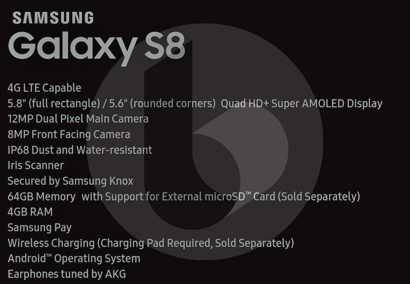 A circa un giorno dal rilascio della scheda tecnica di Galaxy S8+, giungono nuove ed interessanti notizie su quella che dovrebbe essere la scheda tecnica del più “piccolo” Galaxy S8. Il sito Technobuffalo ha infatti rilasciato alcune immagini che mostrano la dotazione hardware completa di Galaxy S8.