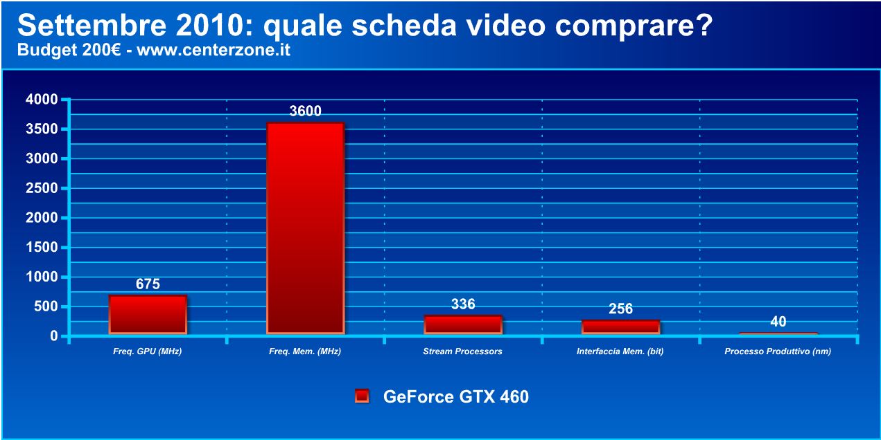 In questa fascia regna sovrana la GTX460 da 1GB, una scheda video con prestazioni di poco inferiori ad una HD 5850 ma dal costo decisamente conveniente. Inoltre esistono molte versioni overcloccate di fabbrica e con dissipatori proprietari che raggiungono le prestazioni della HD 5850 e talvolta della GTX 470.