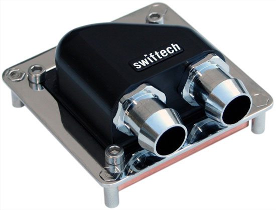 Swiftech ha presentato il nuovo waterblock per schede video MCW80, pensato in particolare per le nuove soluzione NVIDIA e ATI. Il waterblock è caratterizzato da dimensioni di 49.6 x 49.6 x 31.2 mm, peso di 141gr, base completamente in rame, rivestimento in Black Delrin e fori da 1/4″.