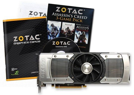 Dopo l’annuncio ufficiale da parte di NVIDIA, i vari partner stanno già presentando le nuove soluzioni Dual-GPU nome in codice GeForce GTX 690. La versione proposta da Zotac non fa di certo gridare al miracolo; troviamo infatti il design reference con ampio dissipatore in alluminio con ventola centrale. Tra le caratteristiche più interessanti, è disponibile in bundle un coupon che ci permetterà di scaricare gratuitamente via Steam il videogioco Assassin’s Creed 3.